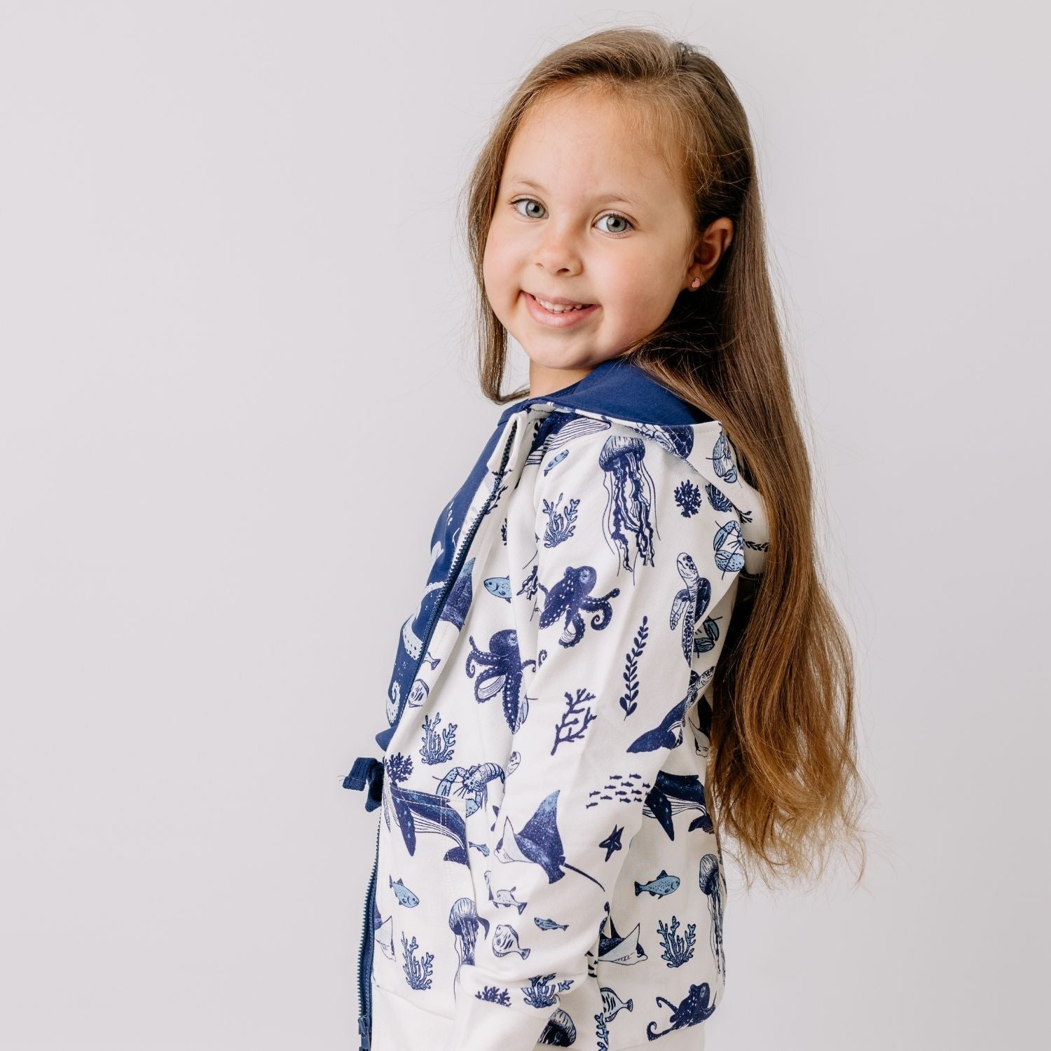 xEntdecken Sie das Walkiddy Underwater World-Sweat Jacket, ein Kleidungsstück, das nicht nur durch sein ansprechendes Design überzeugt, sondern auch voll und ganz der Philosophie der Marke entspricht: nachhaltig, hautfreundlich und fair produziert. Inspiriert von der geheimnisvollen Unterwasserwelt vereint diese Sweatjacke kindliche Verspieltheit mit einem modernen, zeitlosen Look. Die Kollektion SS26, zu der dieses Modell gehört, steht für Frische und Leichtigkeit und passt sich perfekt den Bedürfnissen von Kindern an, die die Welt entdecken möchten – stets gut geschützt und mit einem hohen Tragekomfort.